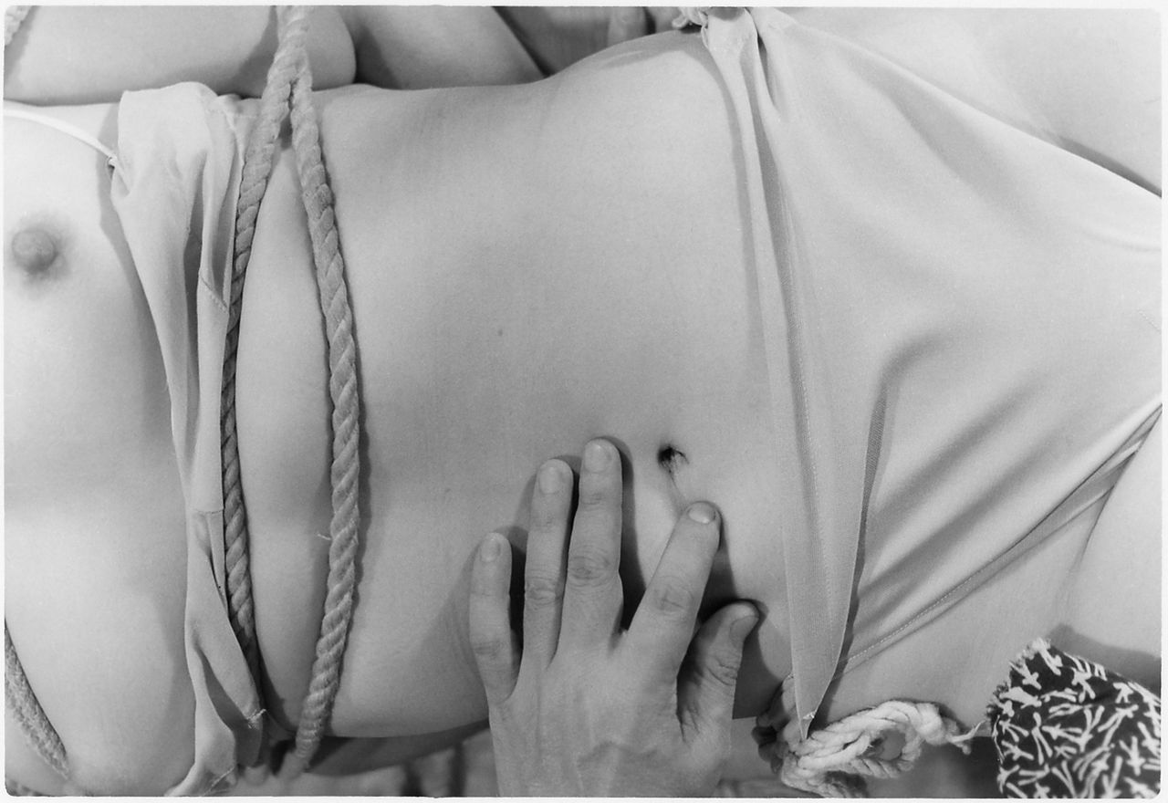 124-02) アップコレクション2ビニールチューブに入れた鎖と脚のみの写真です。小型の浣腸器が見えますね。四方嬢にこんな写真があったような気がするんですが。違うでしょうか?