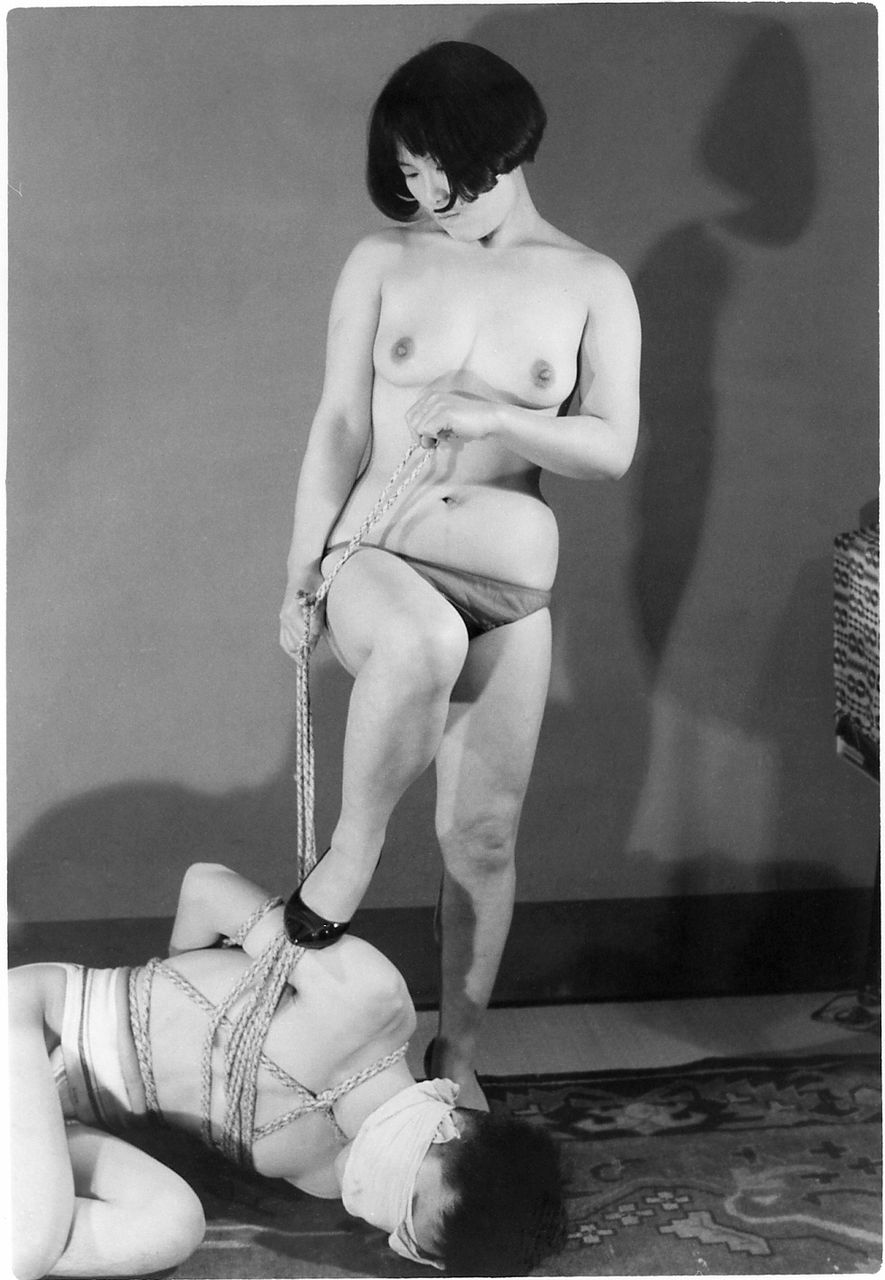 125-36) 大塚啓子・山原清子(まめ)? マゾフォト36(まね)『美女から縛られる』、「暴君と化した二人の逞ましい美女の前に脆いたM男は、必死の抵抗も空しく、縄で厳しく縛られてゆく甘美な過程を連続で狙いをつけてゆきます。後手高手小手に縛りあげられて身動きもできなくなった男に、これから二人のベテラン女性が、さてどのような暴虐のムチを揮うでしようか、詳細は写真によってお楽しみ下さい。」