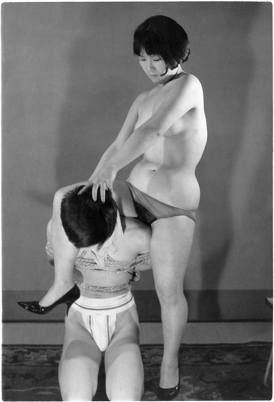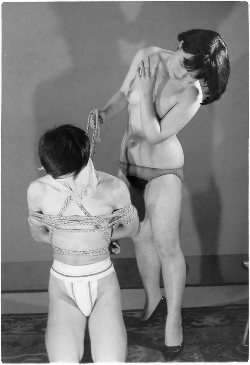 125-31) 大塚啓子・山原清子(まめ)? マゾフォト31替わって、65年8月号で発表された、大塚・山原がM男を責める写真を御覧に入れます。各12枚8組。計96枚ですが、私は1組12枚しか持っておりません。
