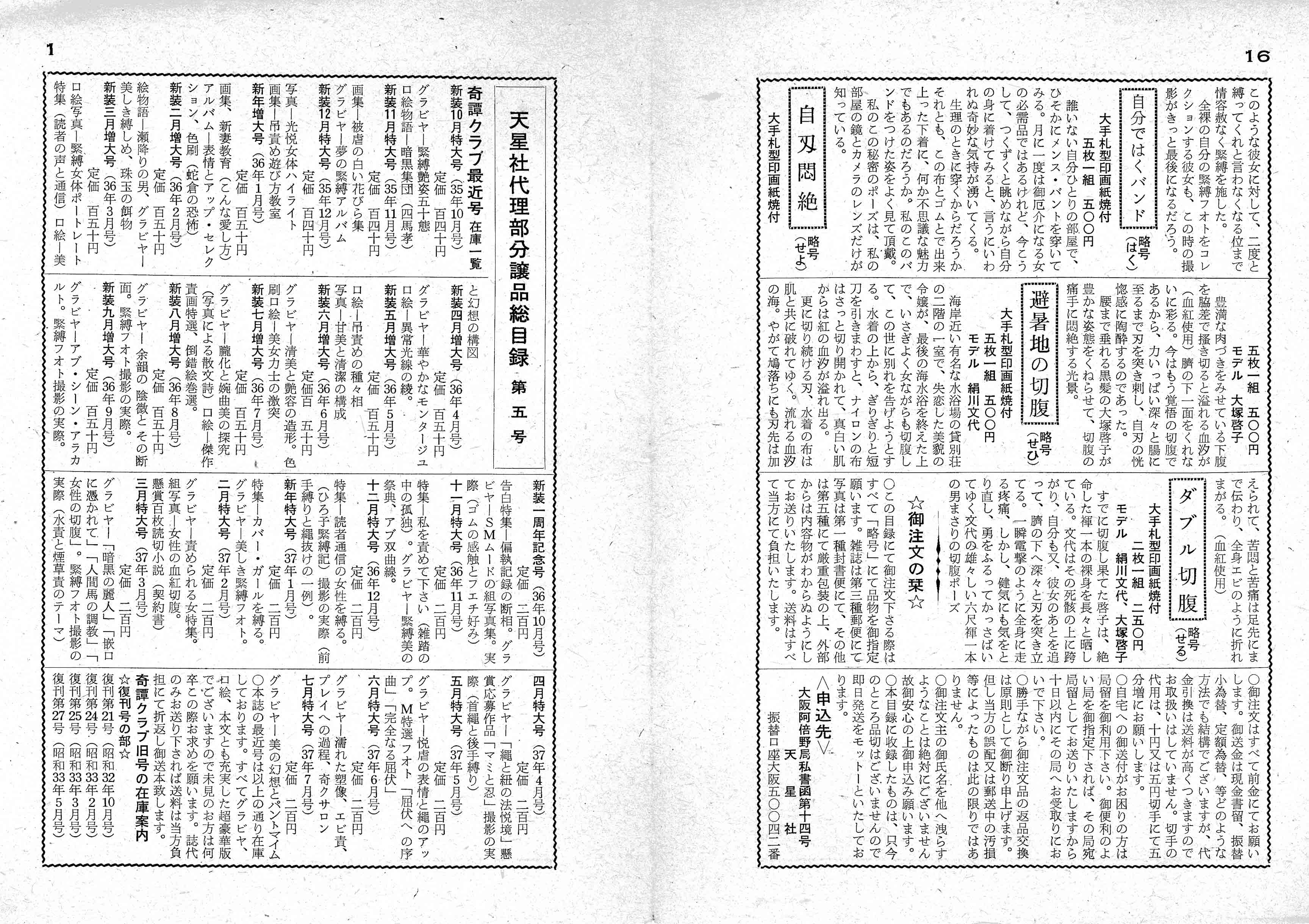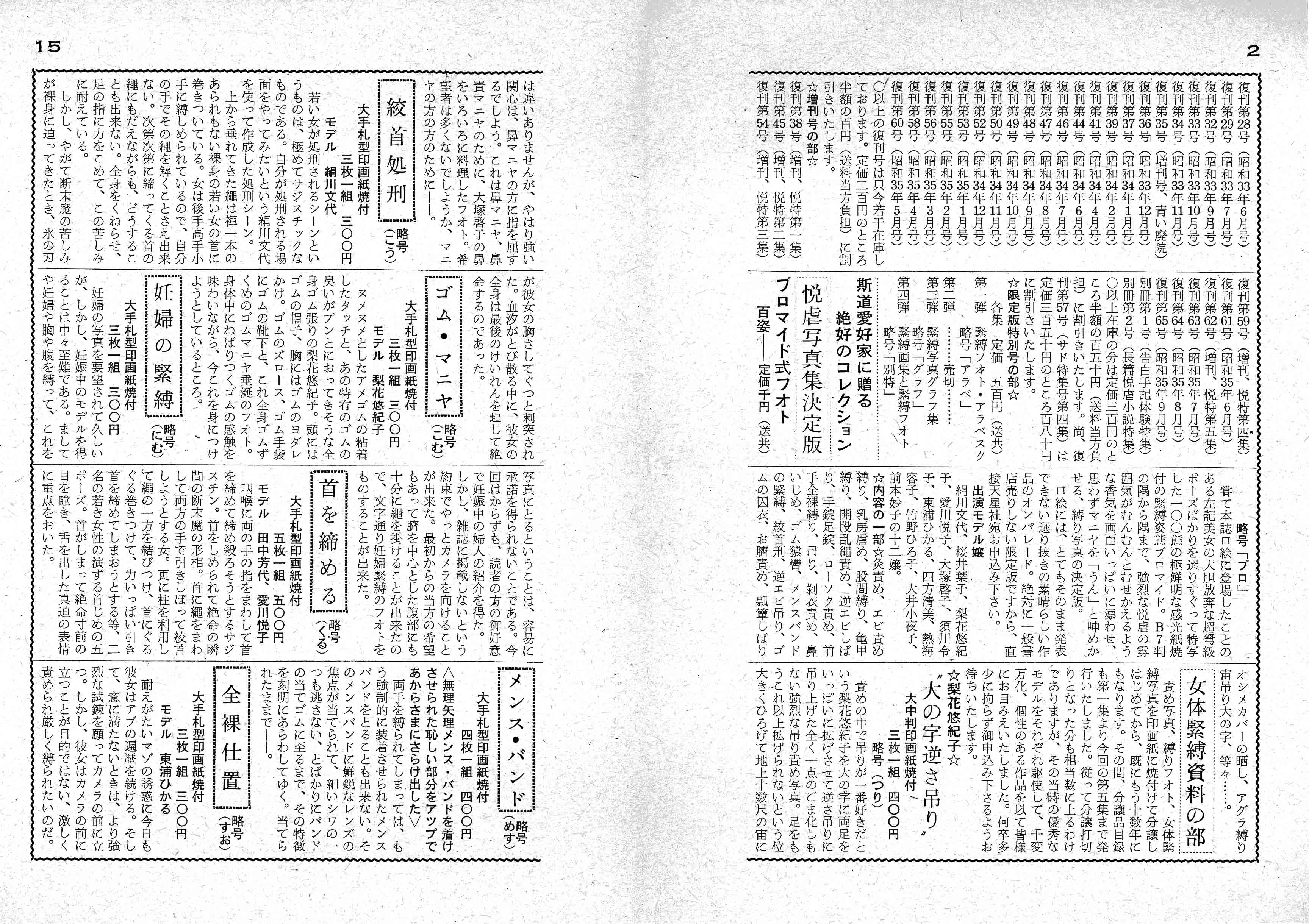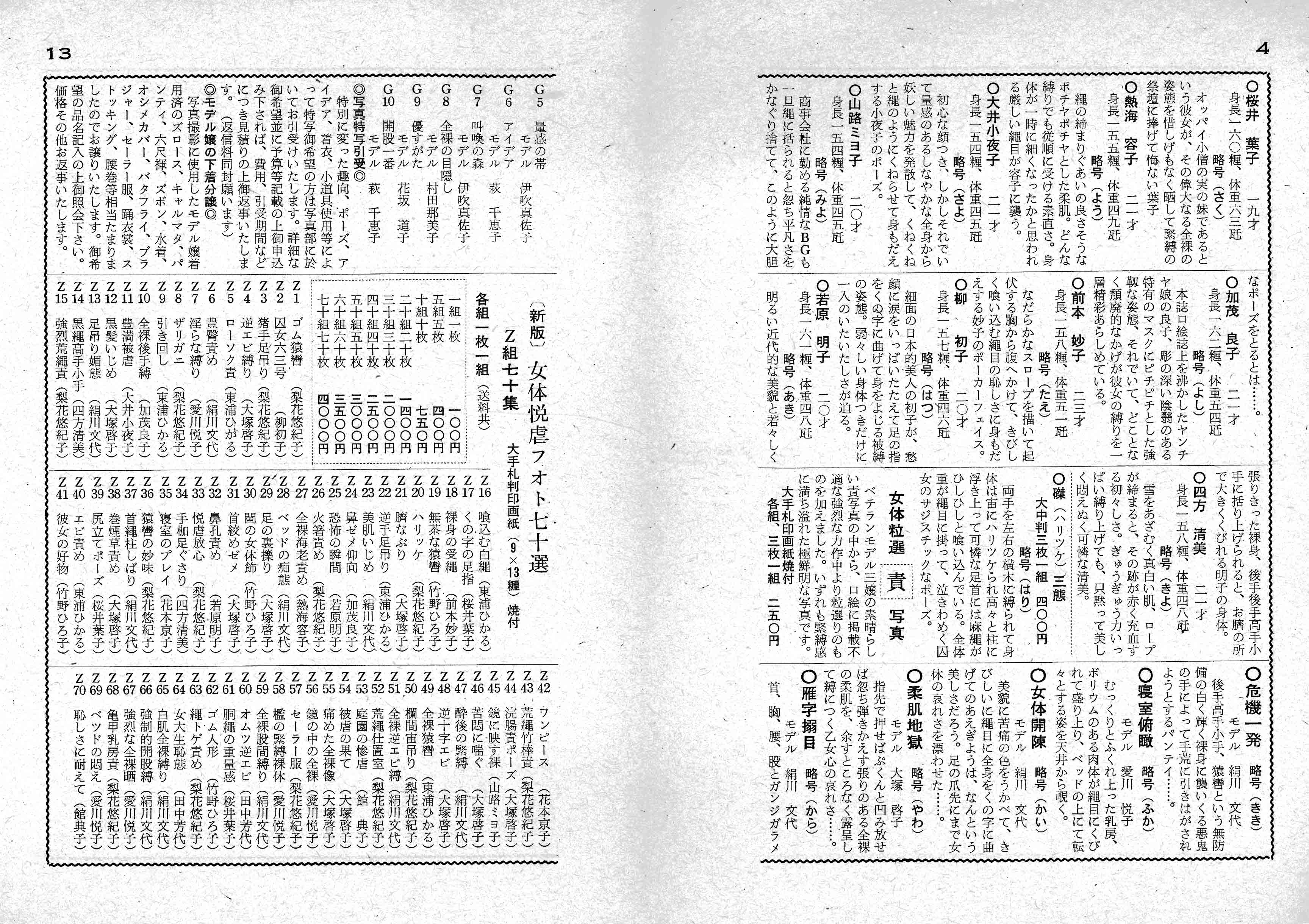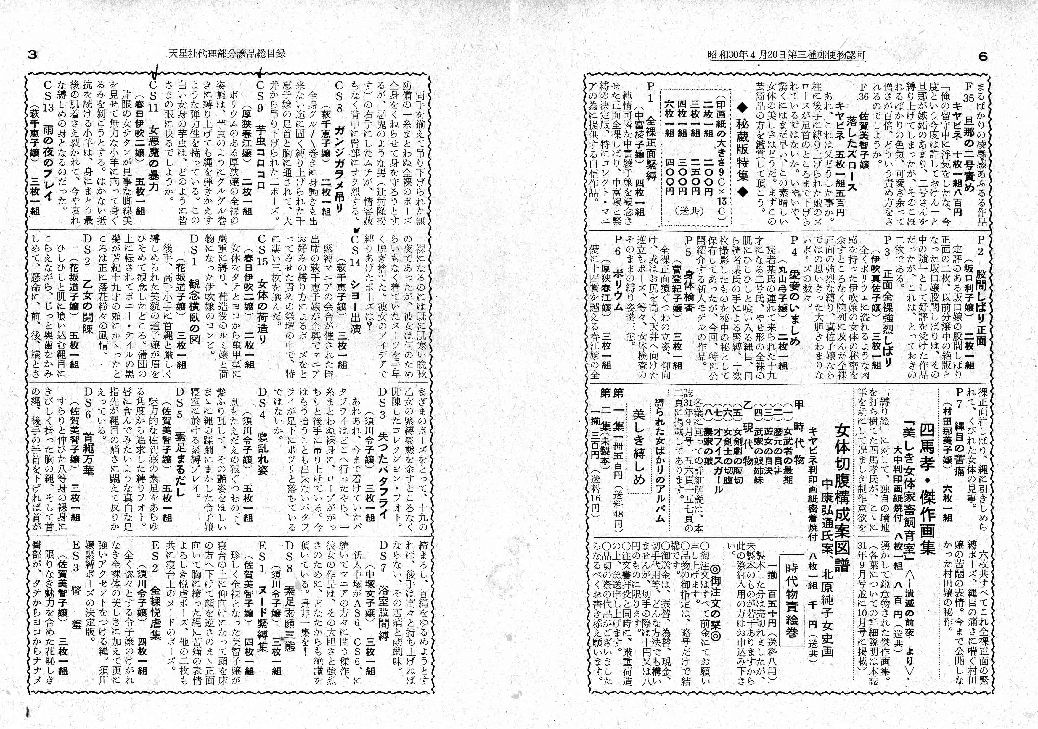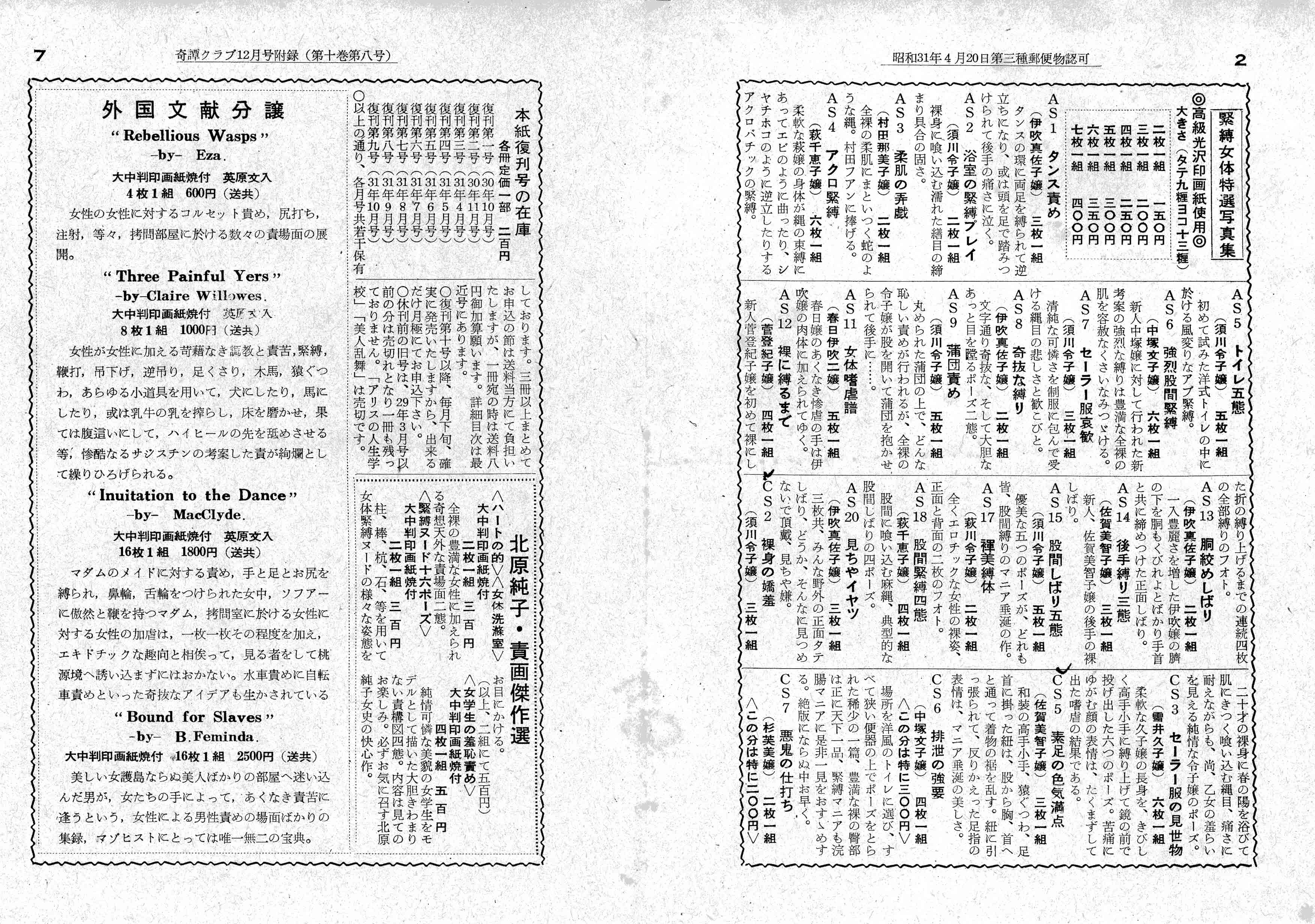 これら写真は、52年8月号以降『責め女の写真実費分譲』として販売されたものと思います。