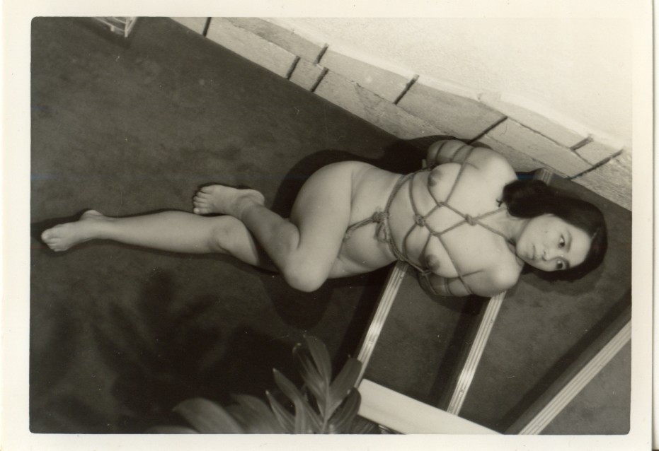 随分ローキーの茶色に変色した写真のデータを頂戴しました。モデルさんはよく分からないのですが安井喜久子に似ています。もしそうなら、68年1月号の(おわ) 『逆エビ責めに喘ぐ』 4枚組の3枚ではないかと思います。