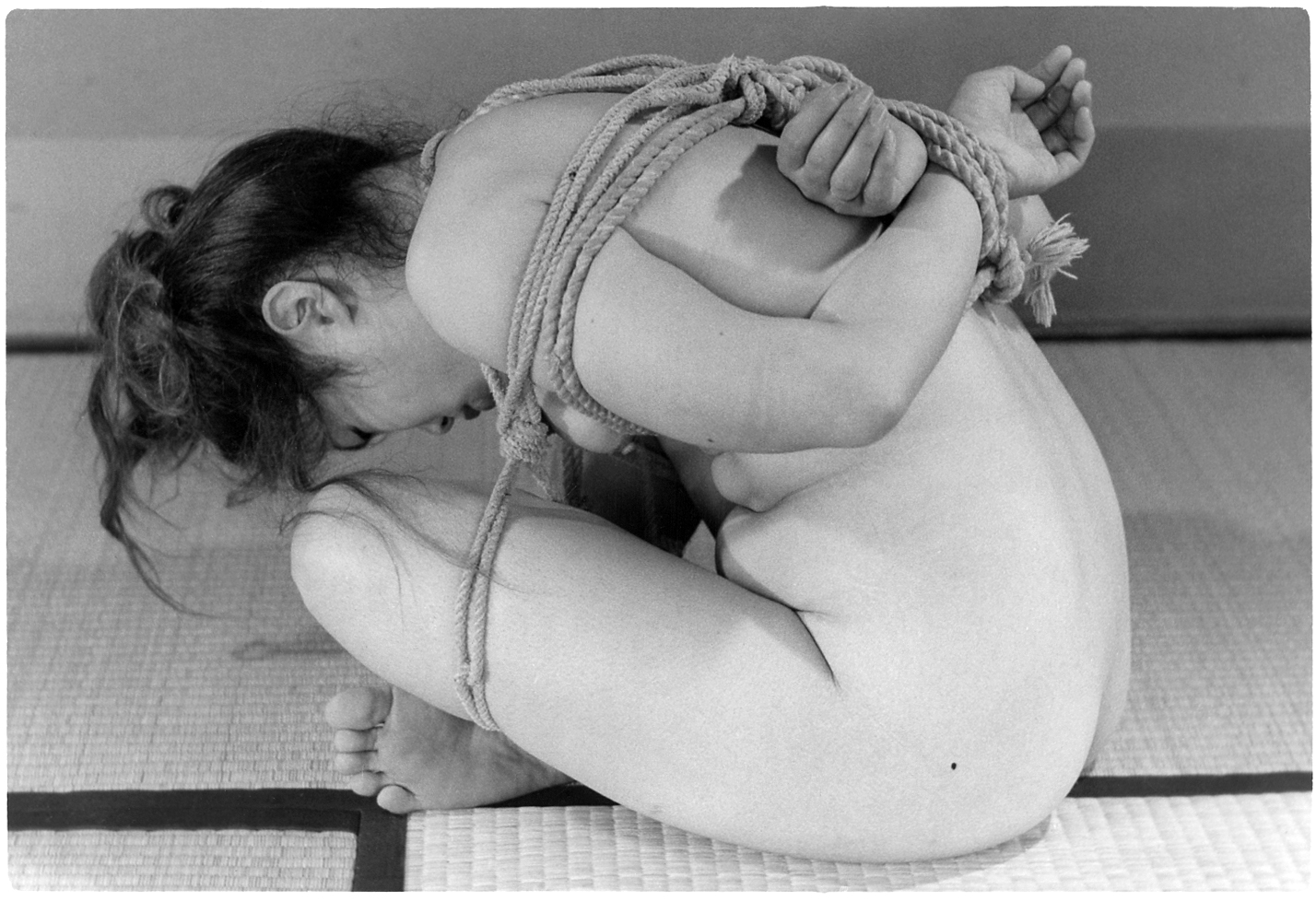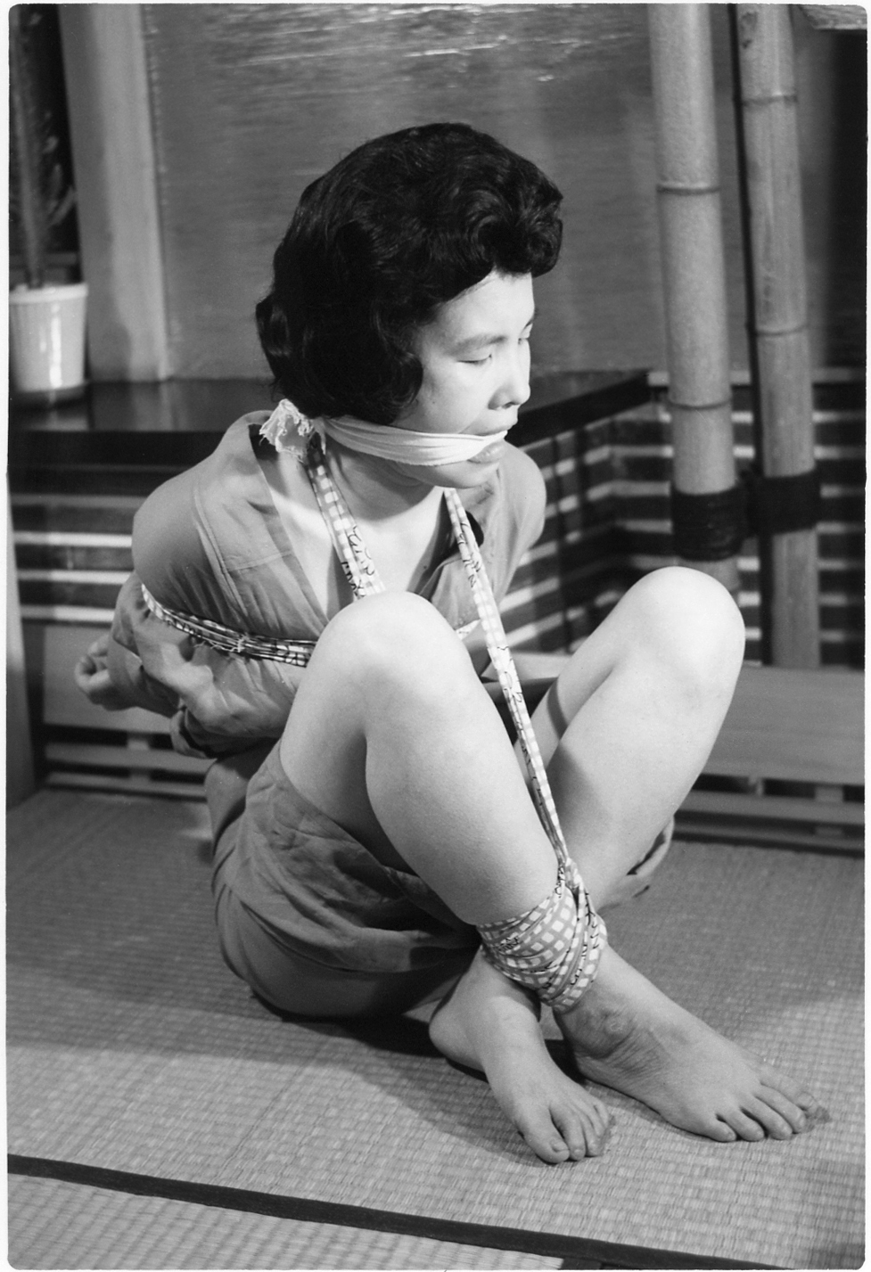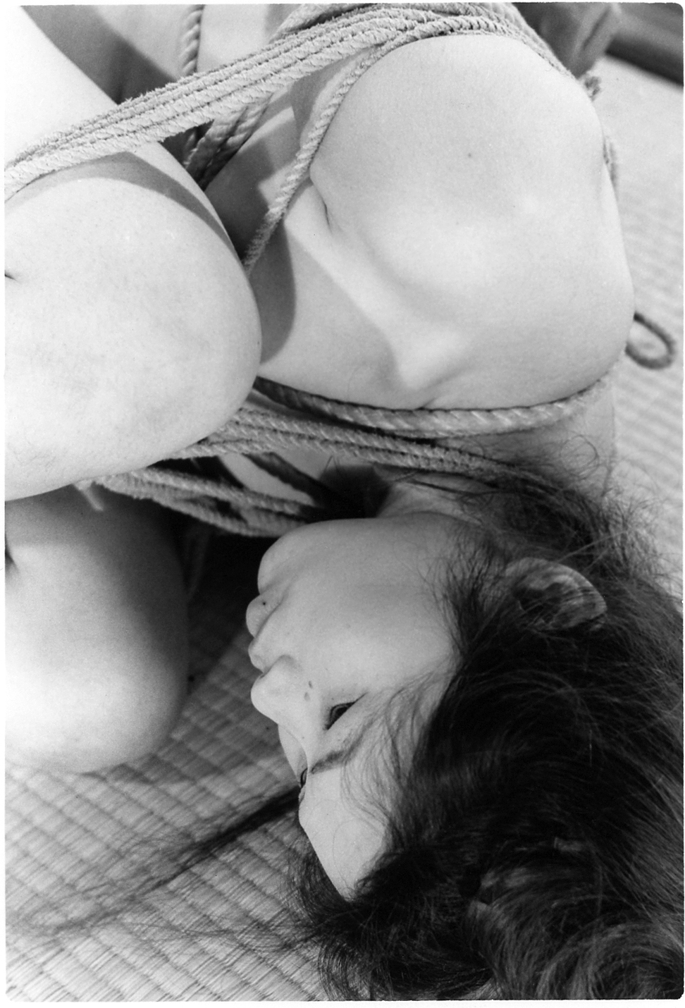 これが木村洋子のデビュー作です。初出は大中判でしたが、この印画は大手札版ですので65年7月のK組49の『立木より逆さ吊り』でしょう。Z組64の可能性も無いではありませんが・・・ 96頁で白川様から頂戴した写真と同時撮影ですが、別のカットです。