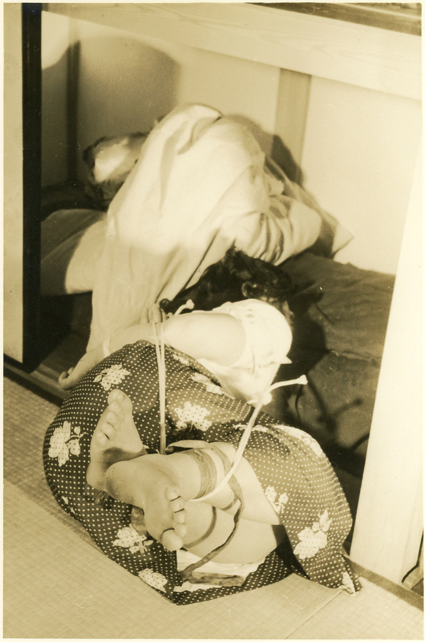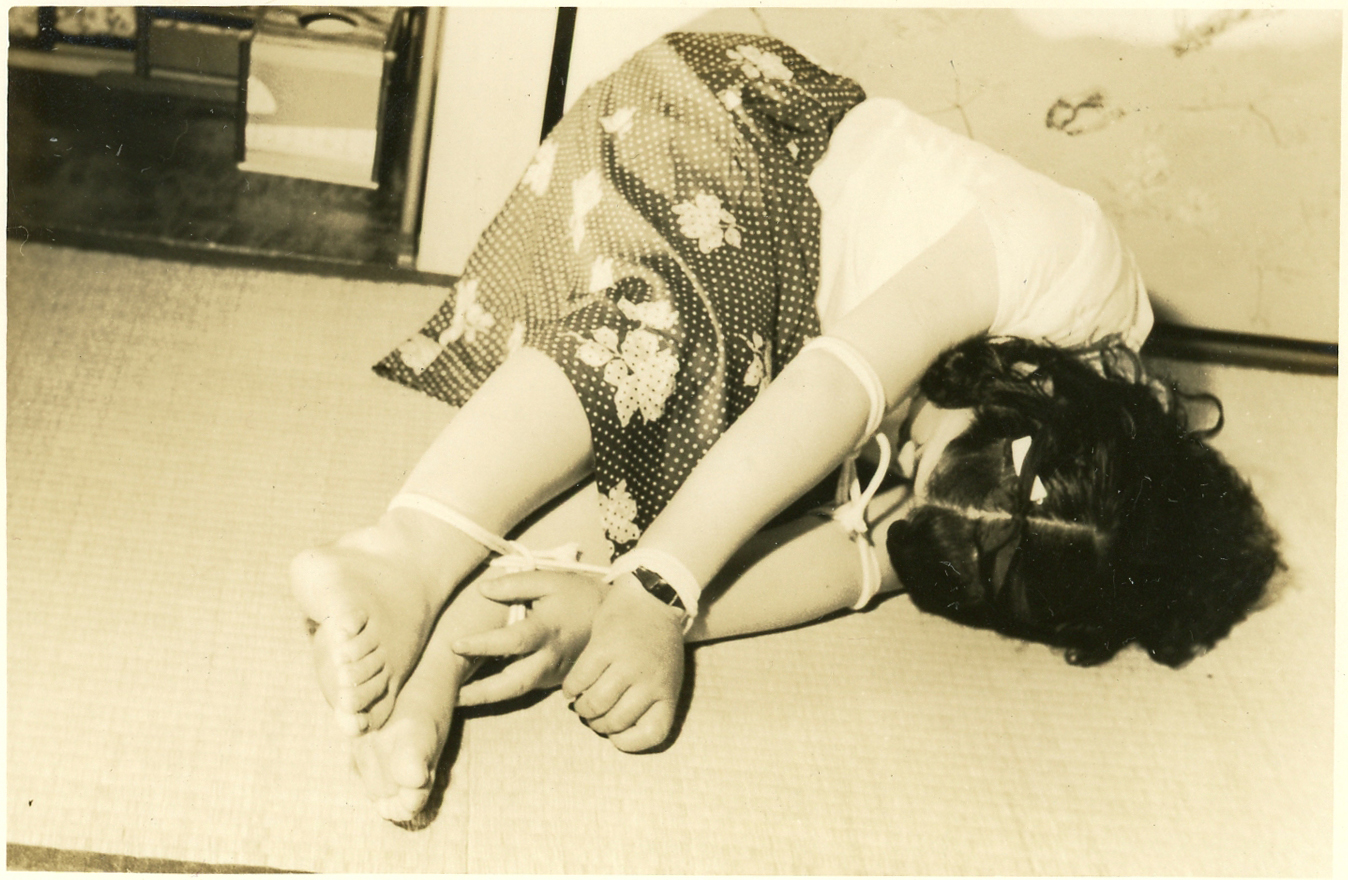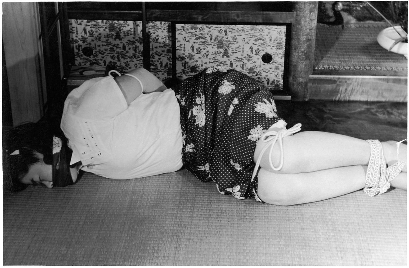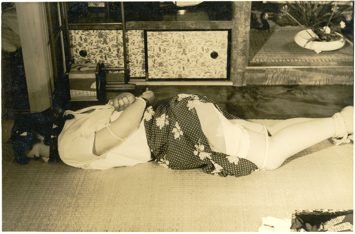 153-01,02) 畳の上のエビ縛りです。