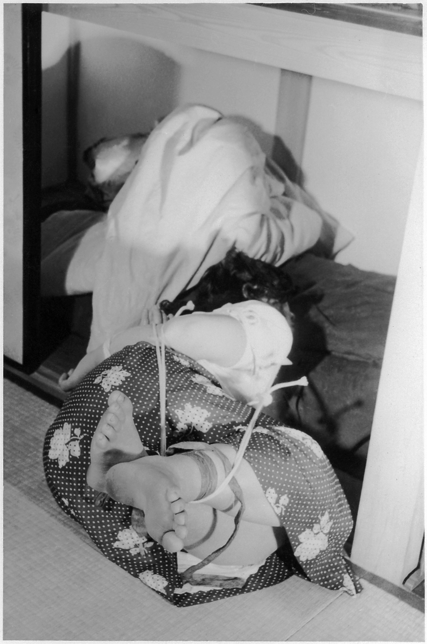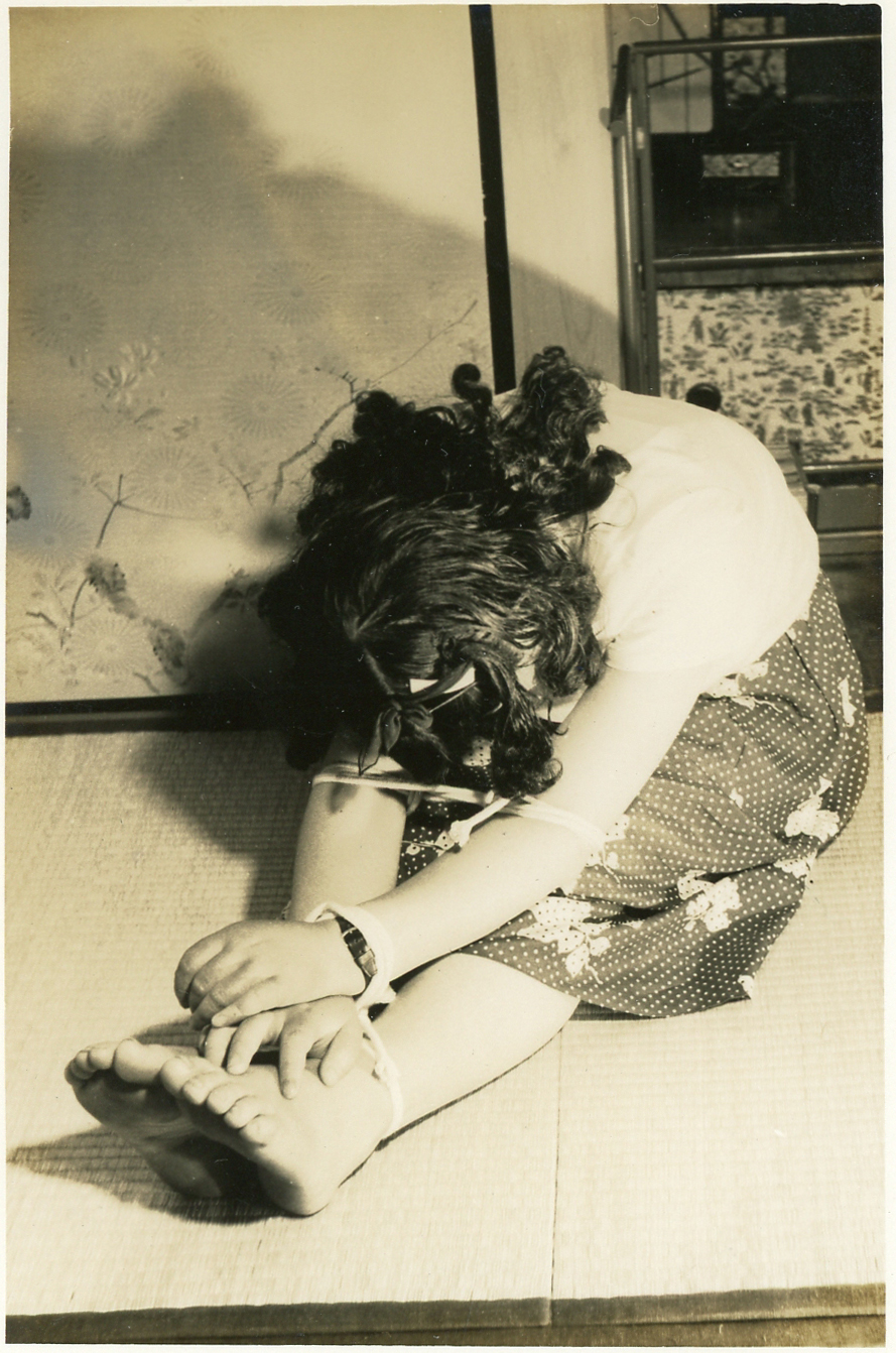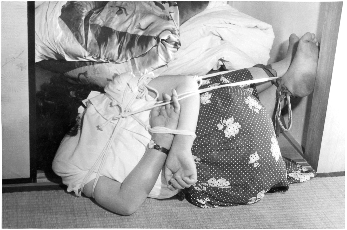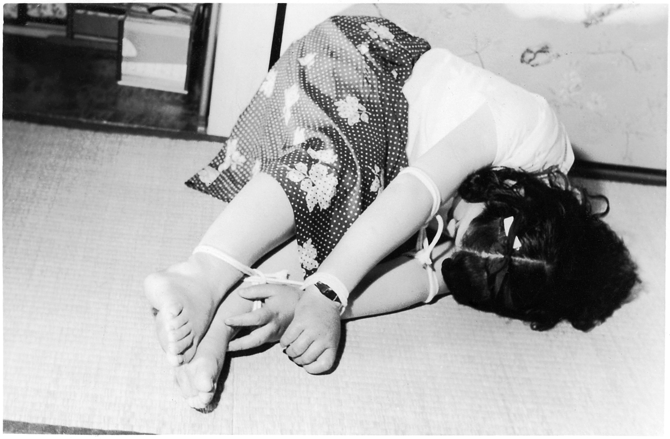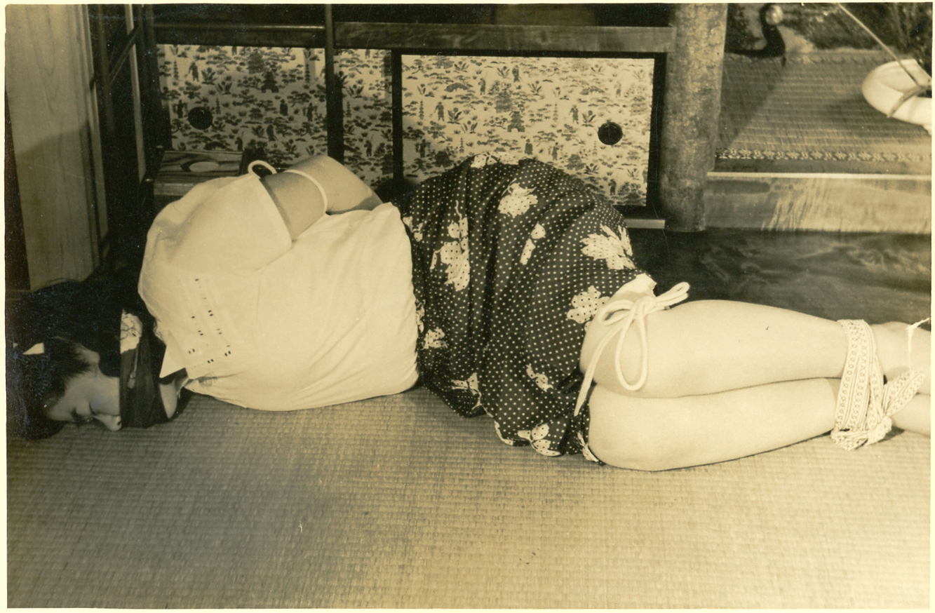 153-01,02) 畳の上のエビ縛りです。