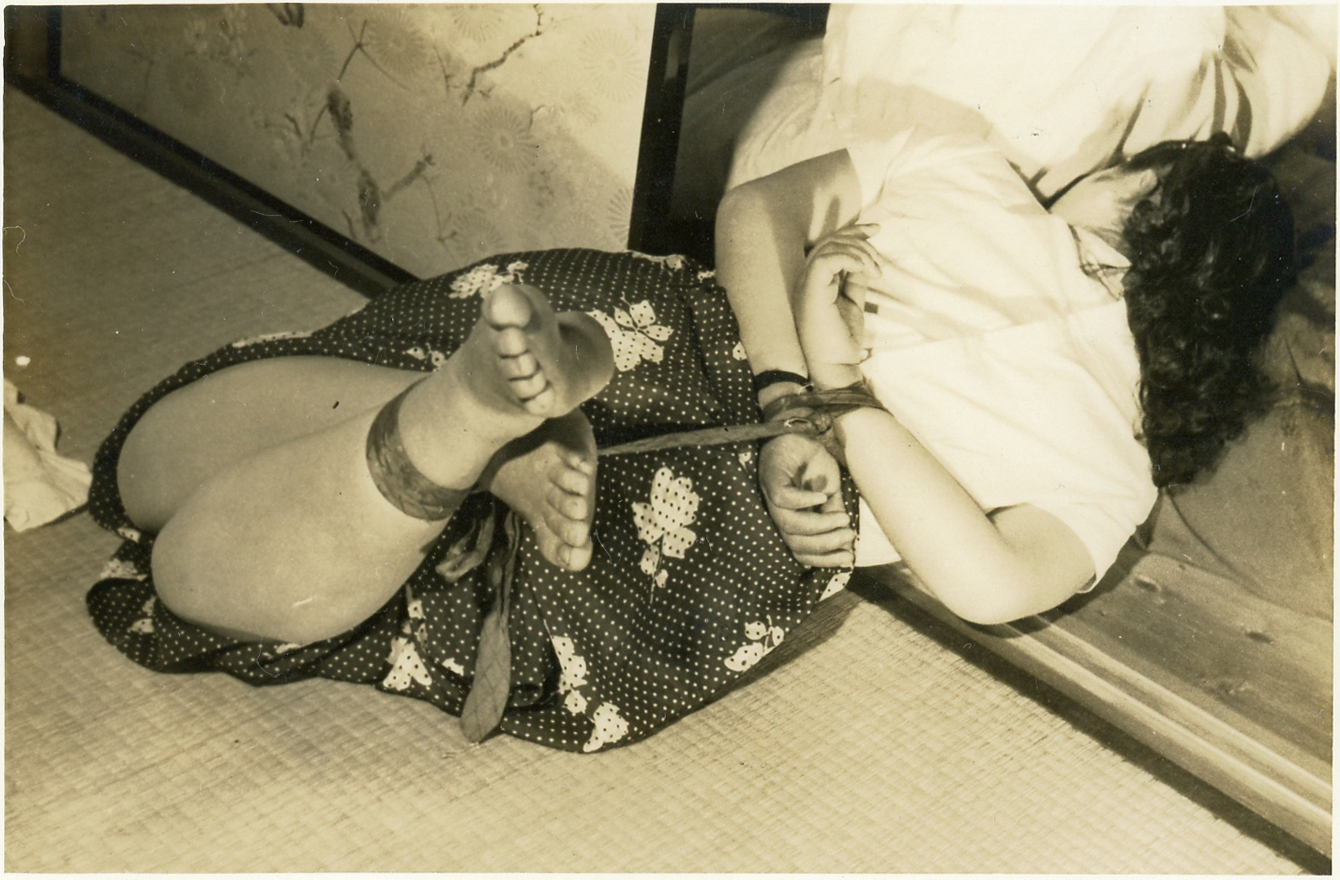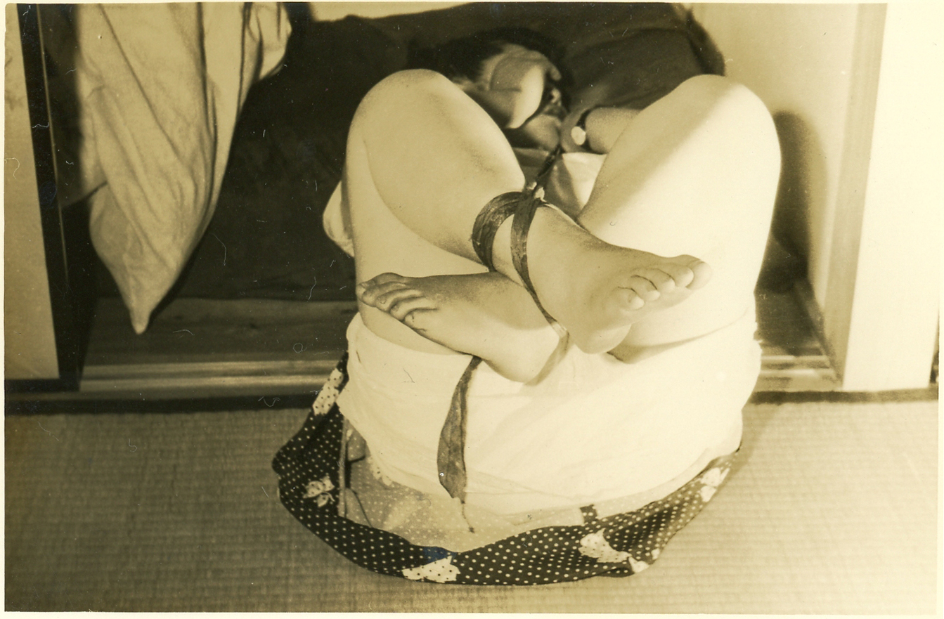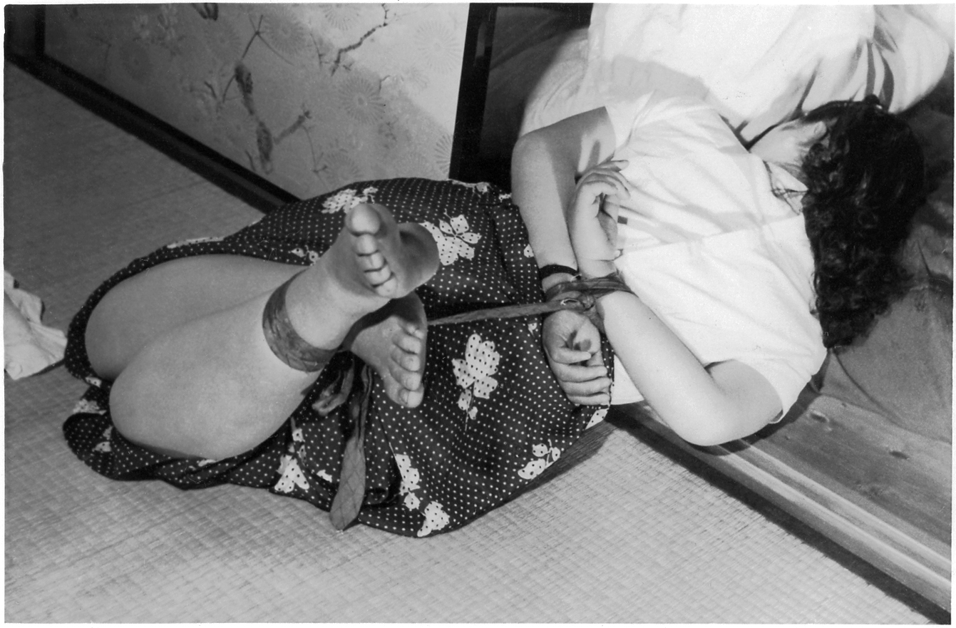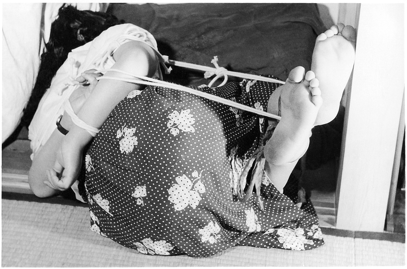 153-01,02) 畳の上のエビ縛りです。