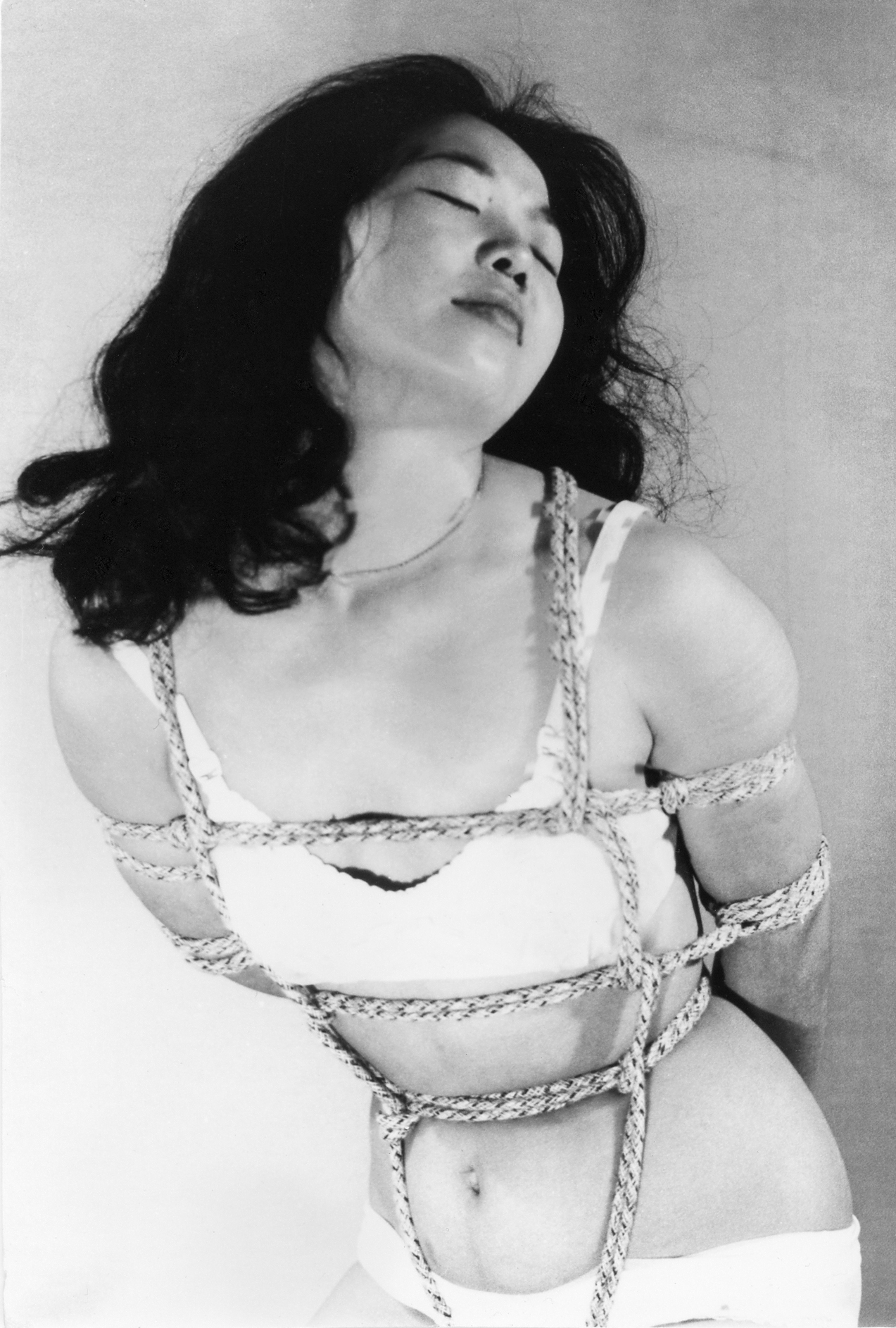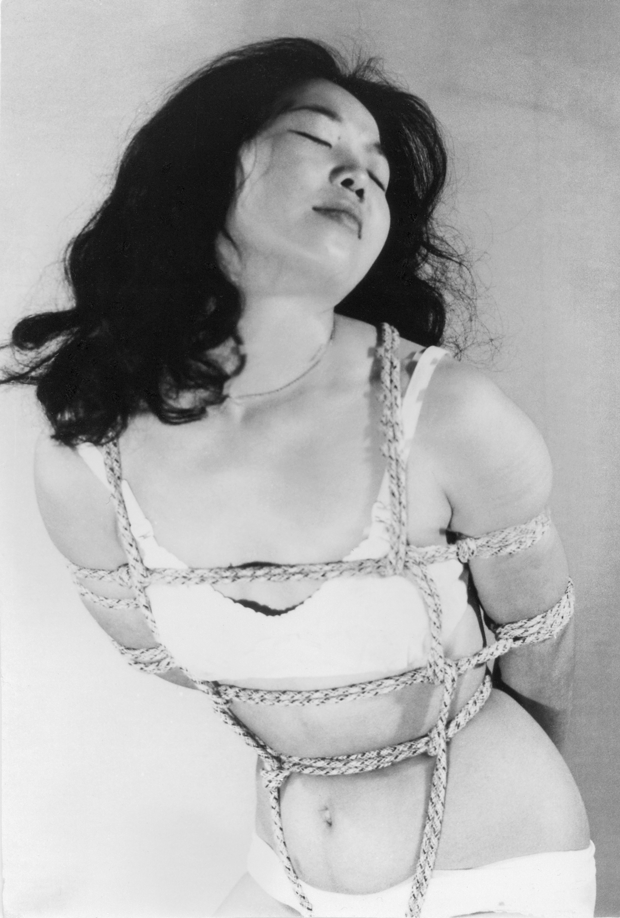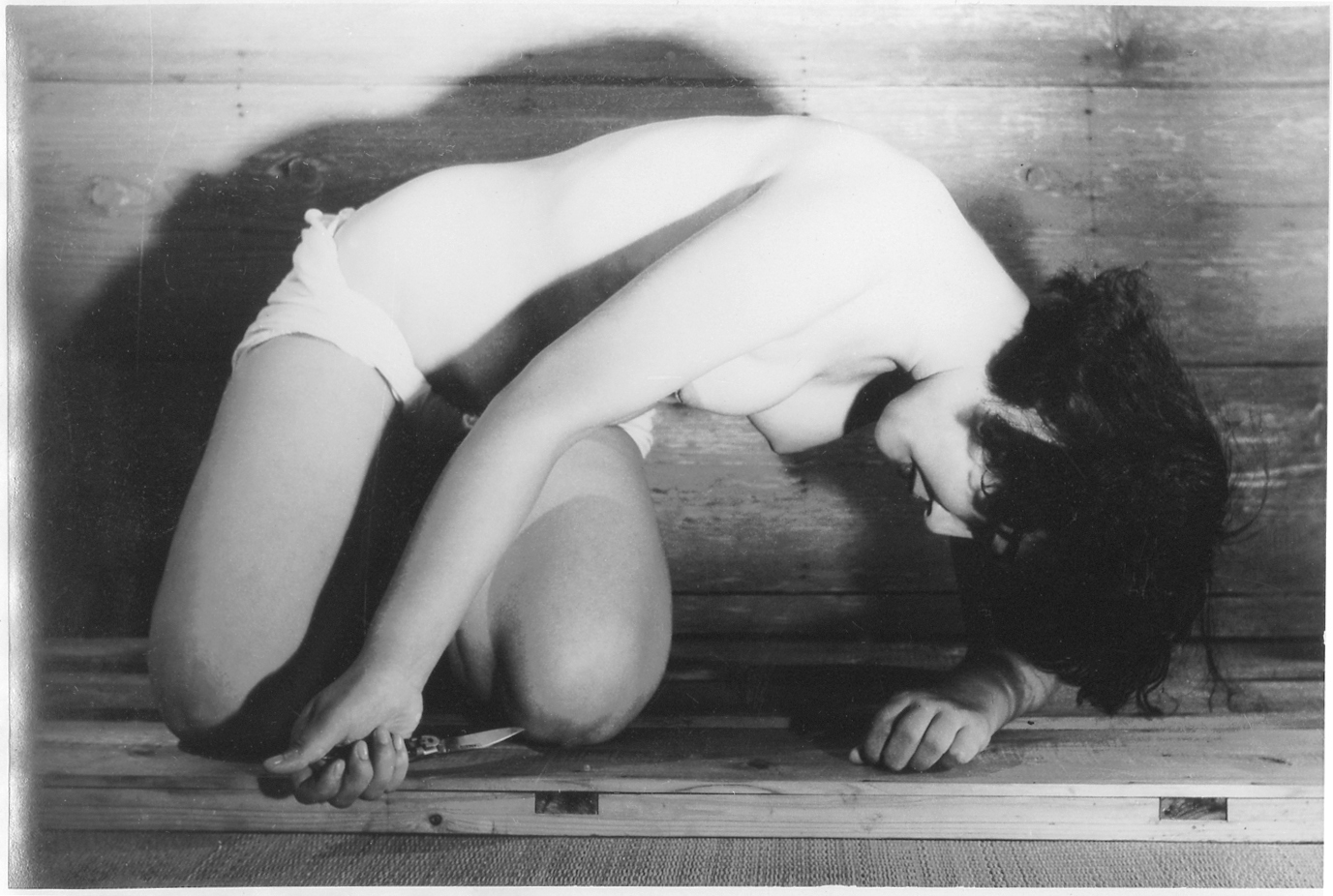 158-00 の「切腹擬態写真」の同モデル同時撮影分です。髪飾りに特徴がありますが、モデルは誰でしょうか。