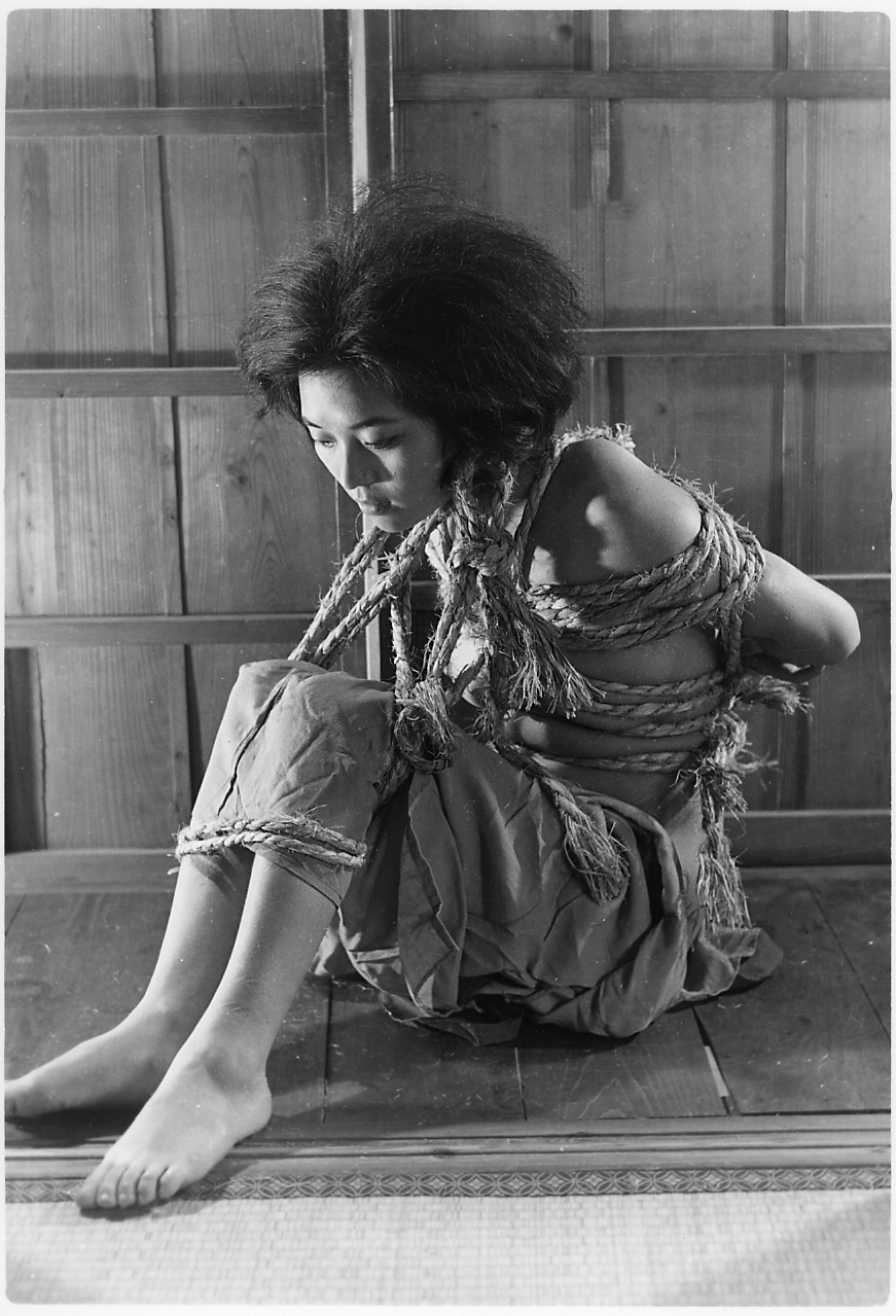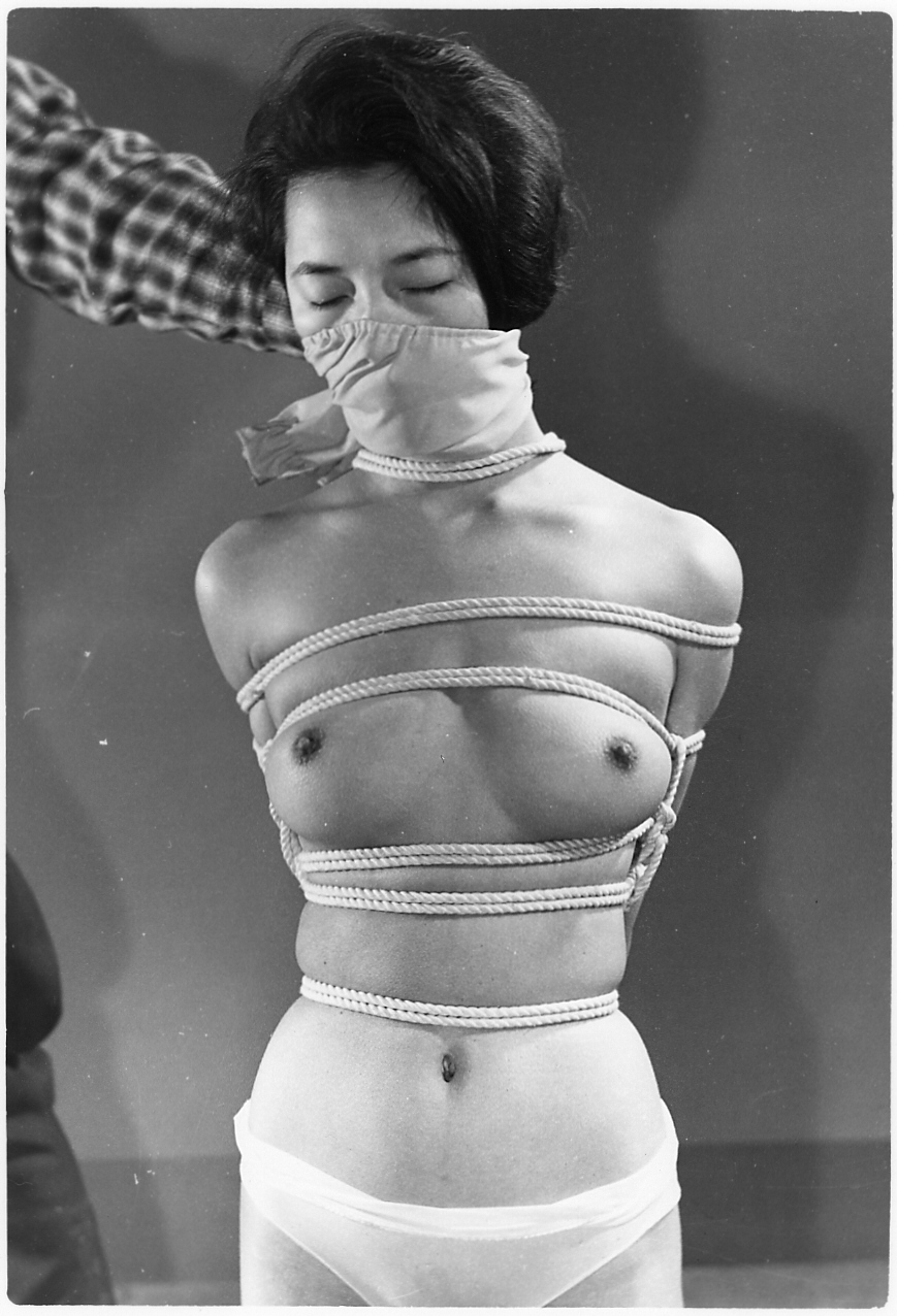 完全に飼育し終えた梨花嬢が吊責めやエビ責め、逆エビ責めなどにも満足せず、被虐の終局点として誠に強烈きわまりない縄を、全身くびれきってしまう程施され、男の手でさいなまれ足で踏みつけられ、感極まって鳴の叫びを挙げた数コマを生来の天性による被虐モデル梨花悠紀子の代表的ポーズとして紹介します。