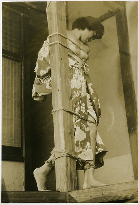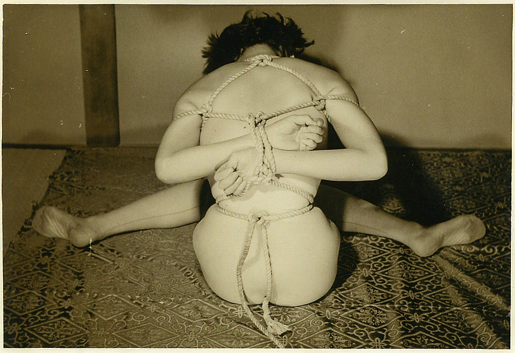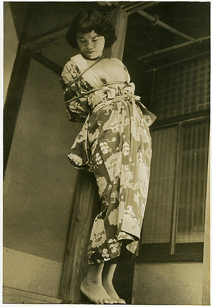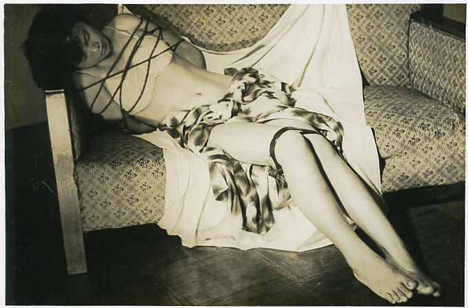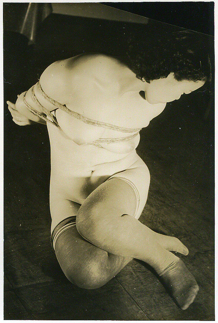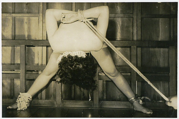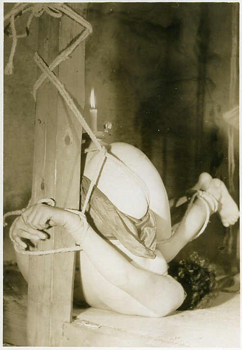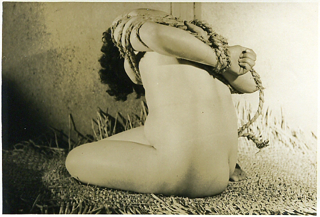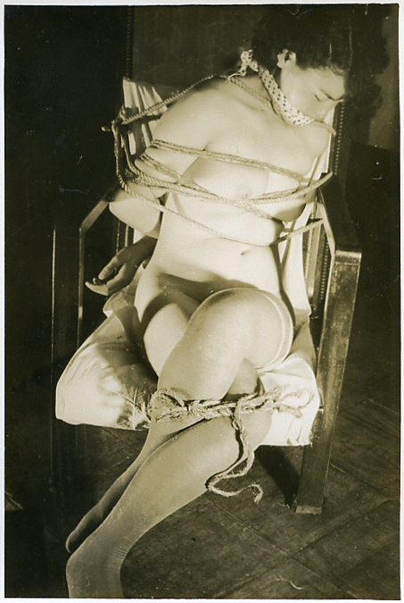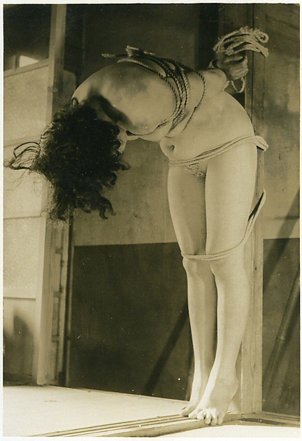 この10bの写真、お顔が潰れていてよく分からなかったのを、どうせ川端譲だろうとタカをくくってスキャンして見ました。すると口元が坂口利子嬢のように見えます。エッと思って調べてみたのですが、坂口嬢にしてはペチャパイなんですね。それに53年9月号の座談会の記事で、初めて縛られたのが「今年の冬」とおっしゃっています。52年10月以前とは考えにくいのですが、第5篇が発表されたのが52年の10月号(多分9月中の発売)ですので、どうにも時期が合わない。違うのかなー。でも似ているなー。