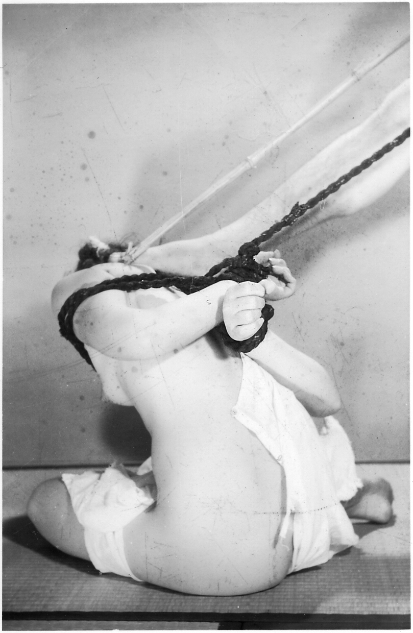 と、書きました。実は皆さんに隠していたことがありまして、(ひか)には2種類あるのです。先の61年5月号と、66年4月号に、『ボリウムをくびる』 (ひか)3枚組、解説「最近になって、ひとしおボリウムを増してムクムクと肉のついてきた張りきった裸身を縄目か、まるで俵のようにくびって、縄目の間に肉がむくれあがっている。」が出ております。
