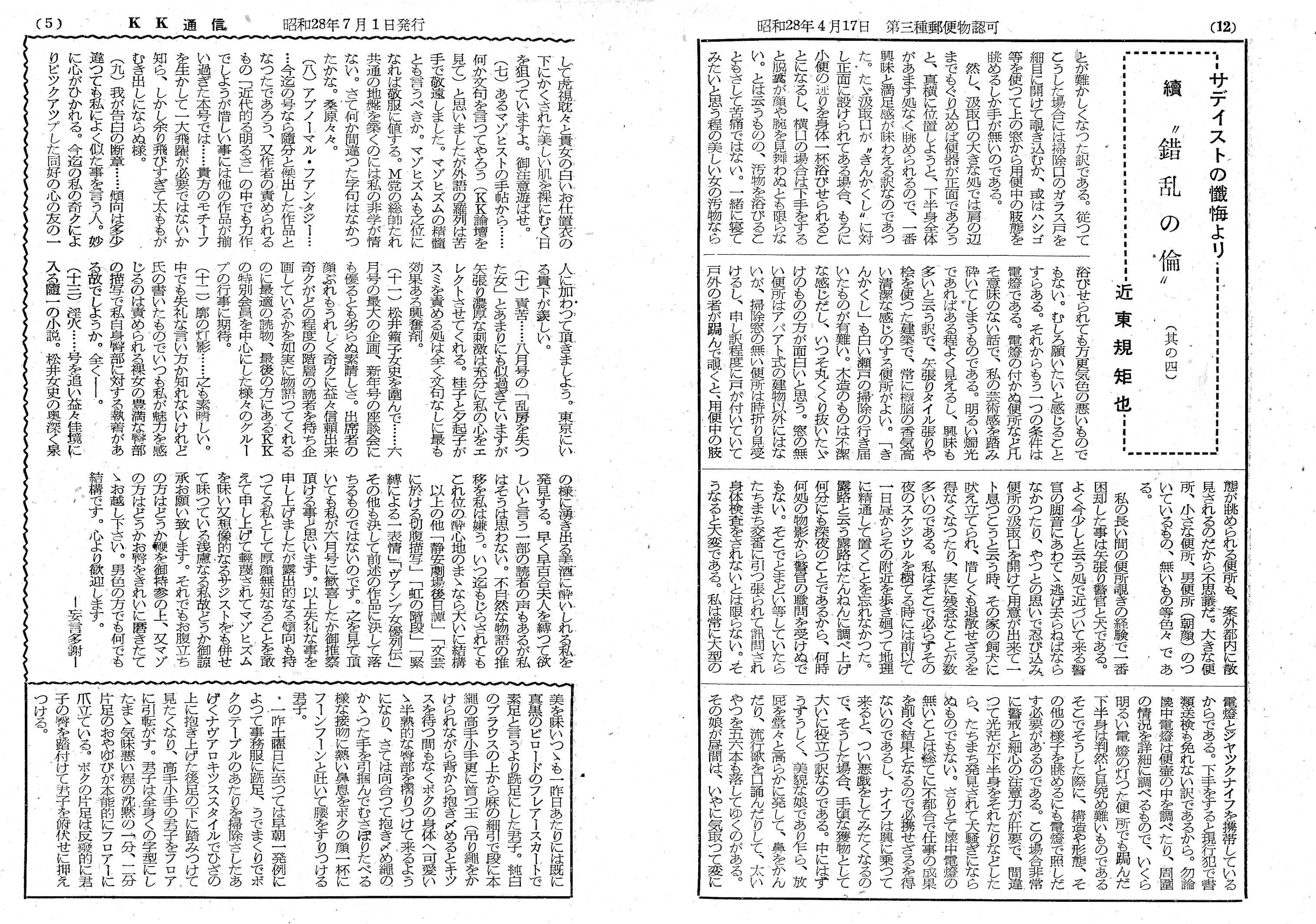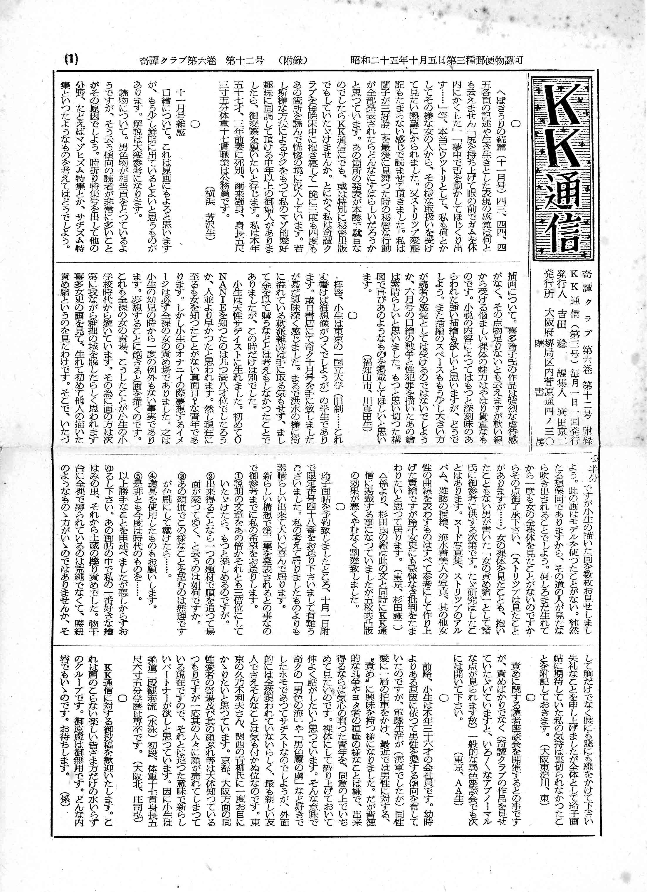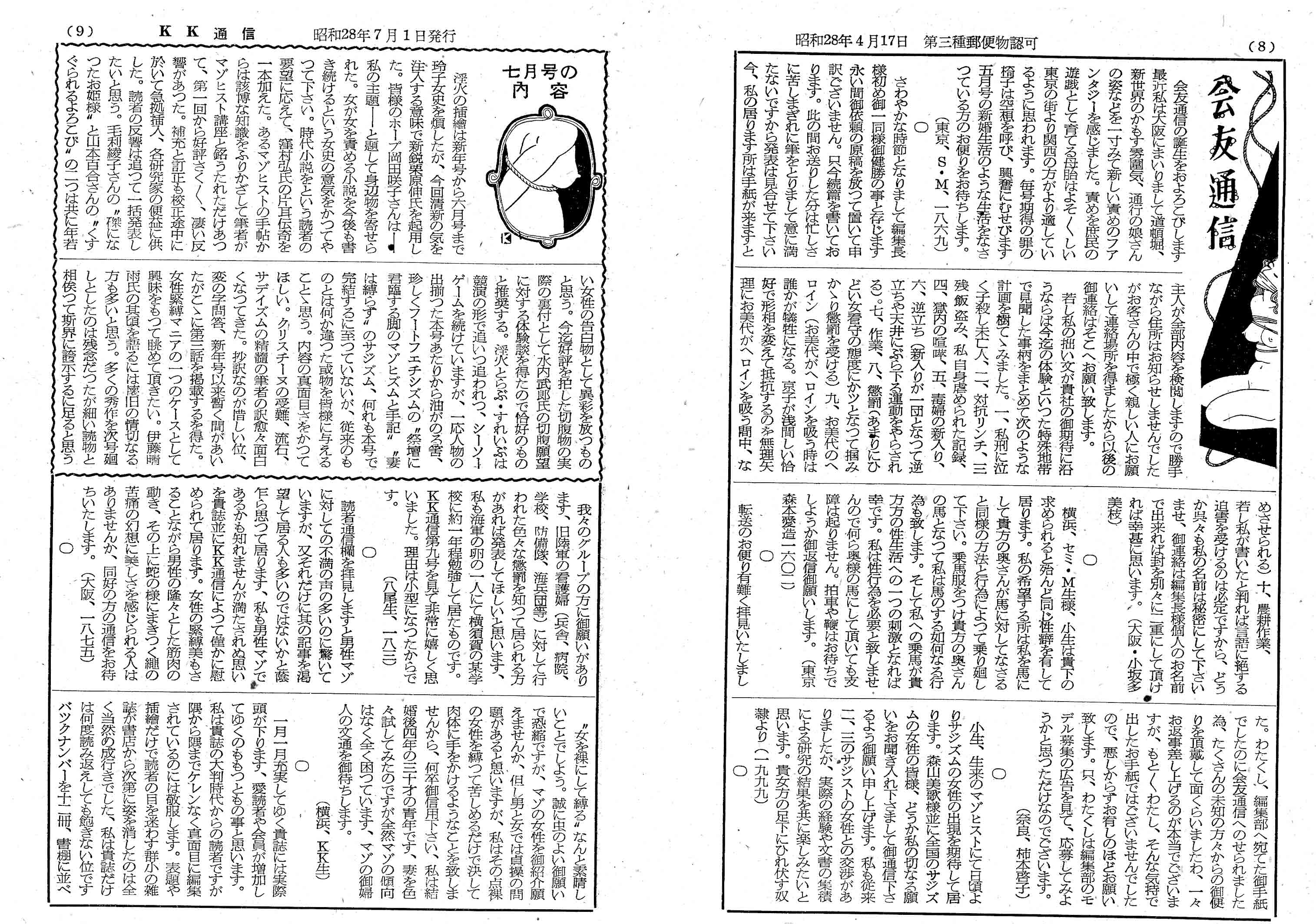 52年(昭和27年)10月号に、『K・K 通信 発送開始!』として、「本誌愛読者を中心とした楽しいグループの肩の凝らない自由な集いのパンフレットとしてKK通信を始めました。(後略)」とあります。
