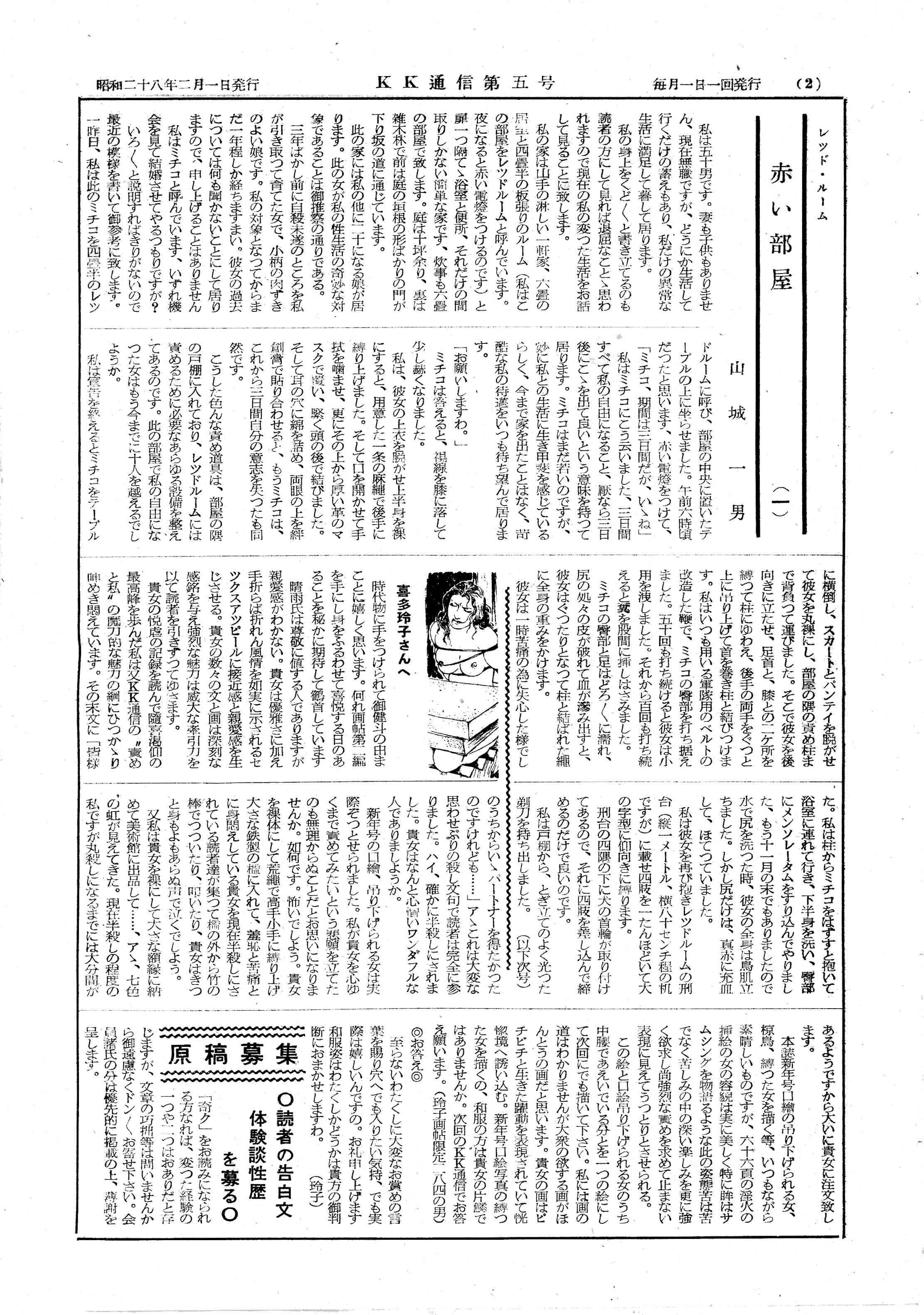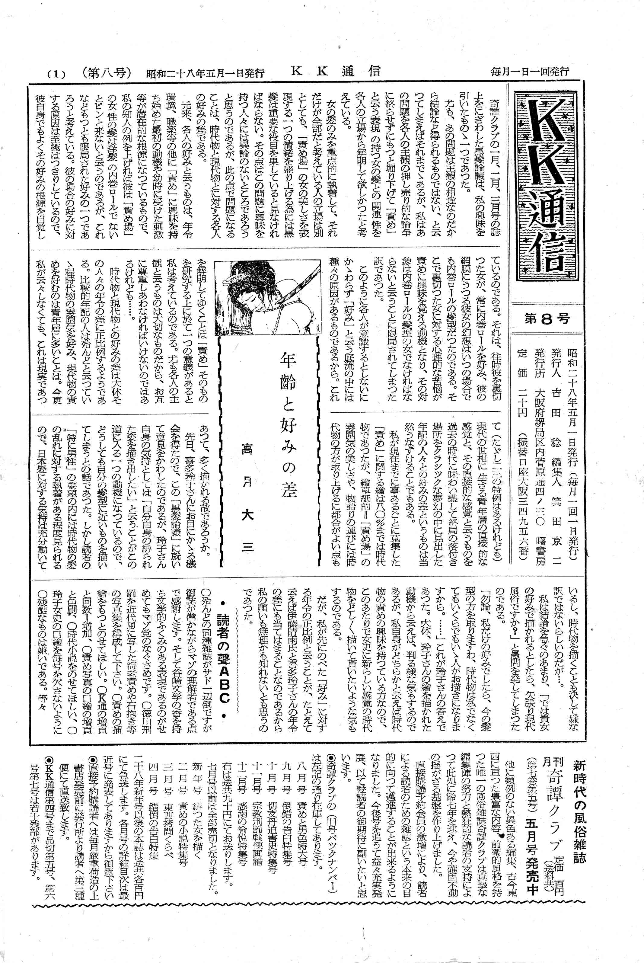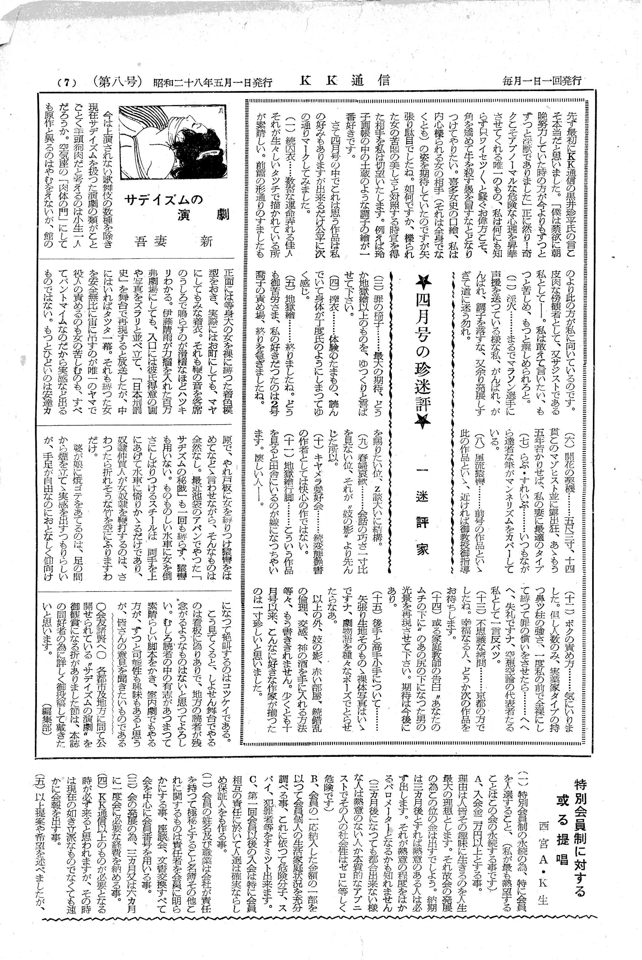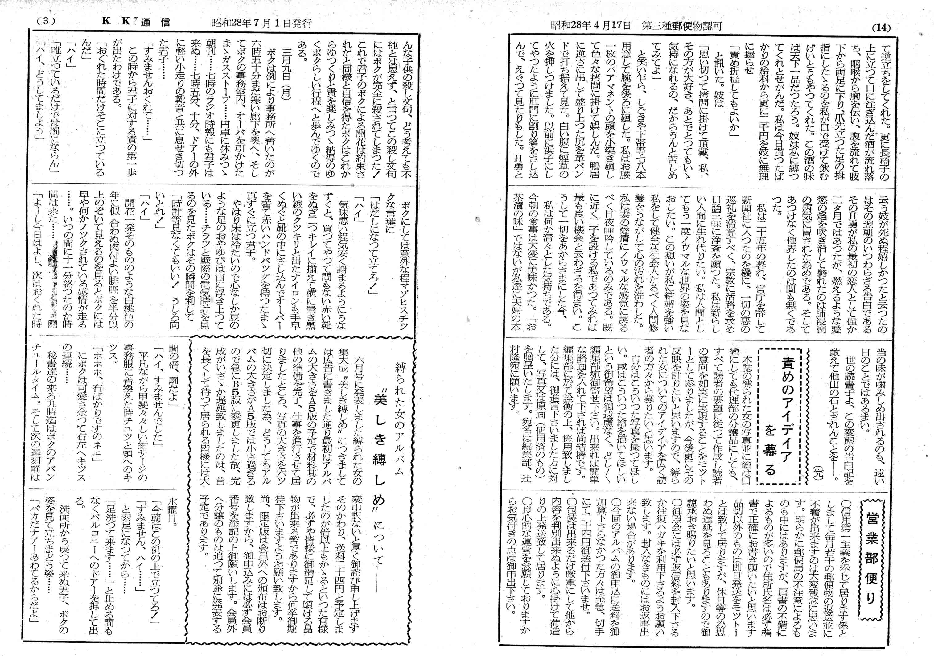 52年(昭和27年)10月号に、『K・K 通信 発送開始!』として、「本誌愛読者を中心とした楽しいグループの肩の凝らない自由な集いのパンフレットとしてKK通信を始めました。(後略)」とあります。