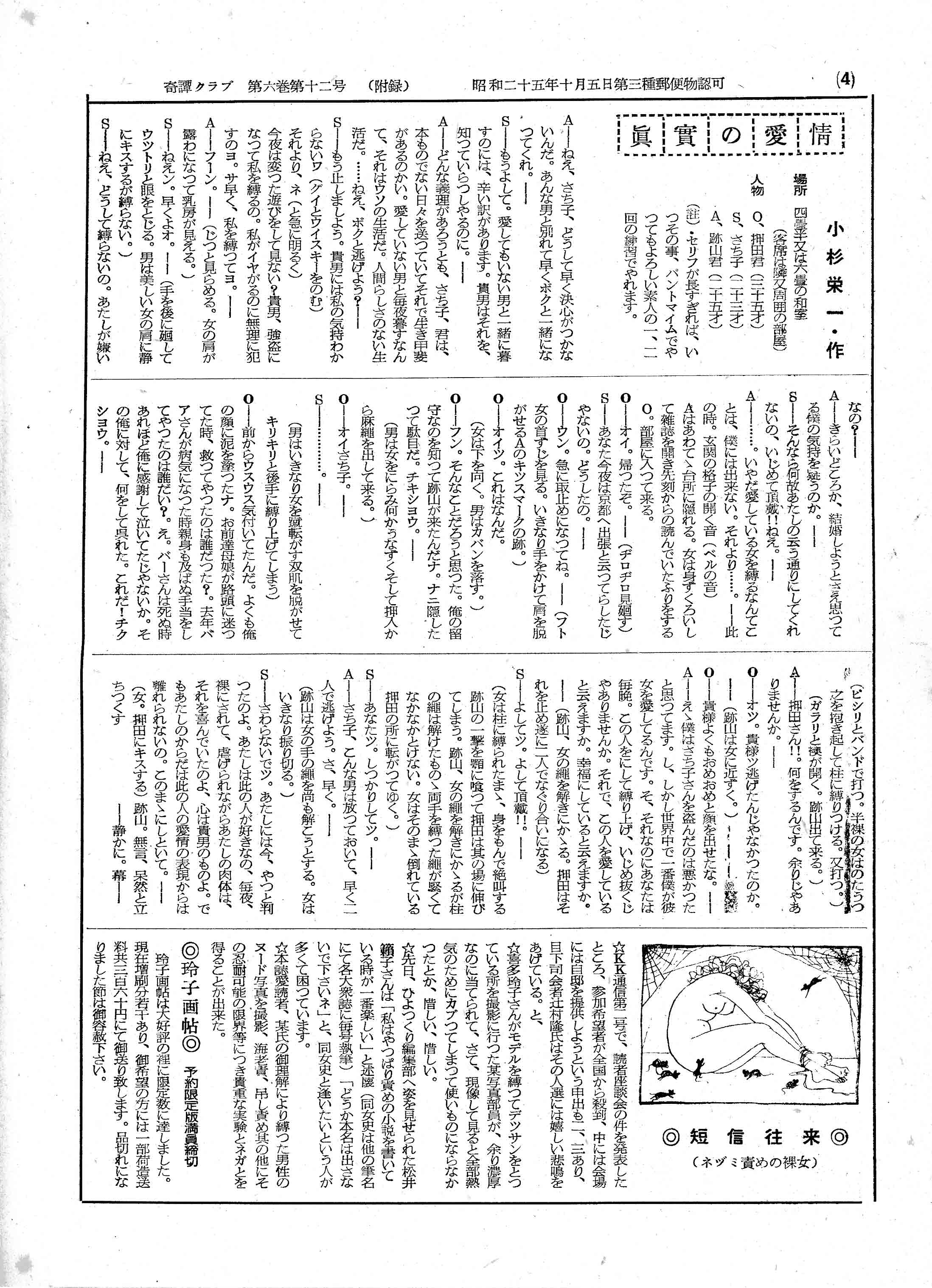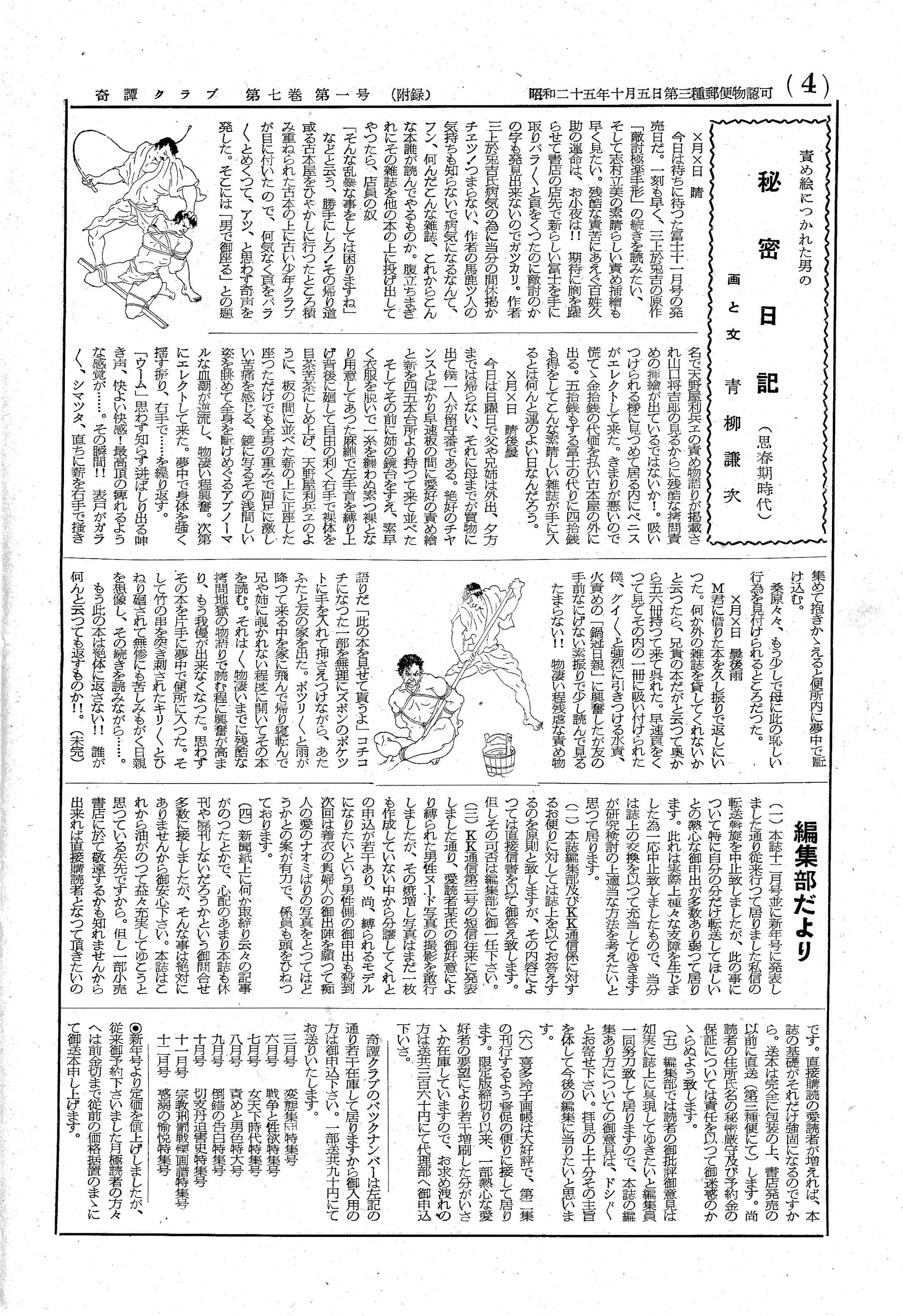 発行タイトルに附録の文字はありませんが、2〜4頁の上方に(附録)の文字が見えます。別冊附録の形で53年1月号に挟み込まれたのか、申し込んだ人だけに郵送されたのかわかりません。